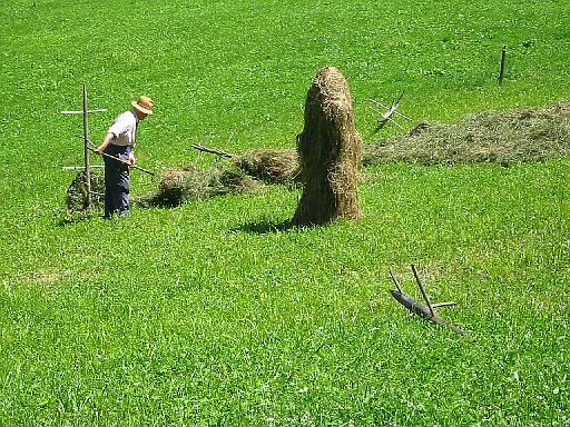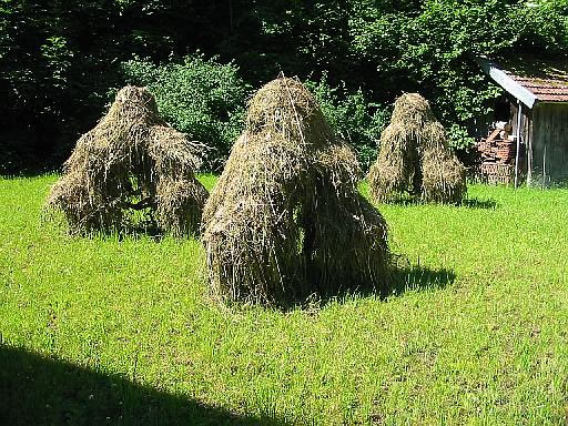 sog. Heumandl: Gras wird zum Trocknen über Holzgestelle gelegt