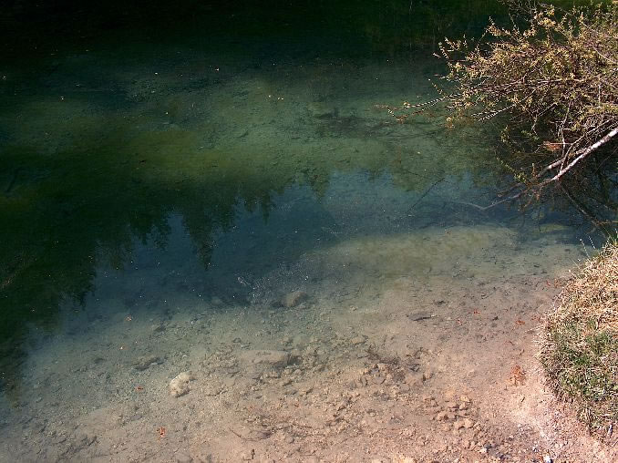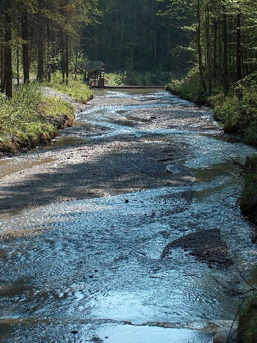 dort, wo das Tiefenwasser ins Bachbett gelangt (ohne weiteren Sauerstoff), ist ein weißer Belag sichtbar (Schwefelbakterien?)