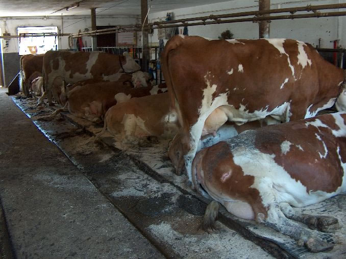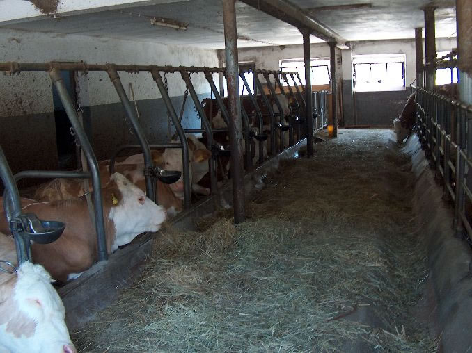 Oberbayerischer Standard-Kuhstall: wenig Platz, kein Freilauf, ...