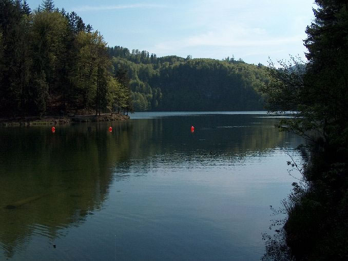 Sanierung des Sees durch Ableitung von sauerstoffarmem Tiefenwasser: geringer Zufluss, viele Wasservögel, ...