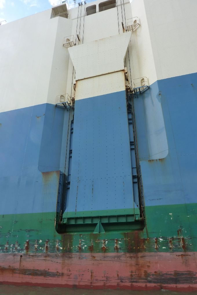 viele Schiffe haben mehrere Verladerampen, eben für jeden Hafen ausgerüstet
