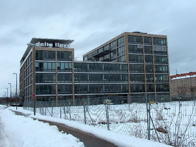 Richtung Autobahnende wird die Parkstadt durch Bürogebäude abgeschlossen