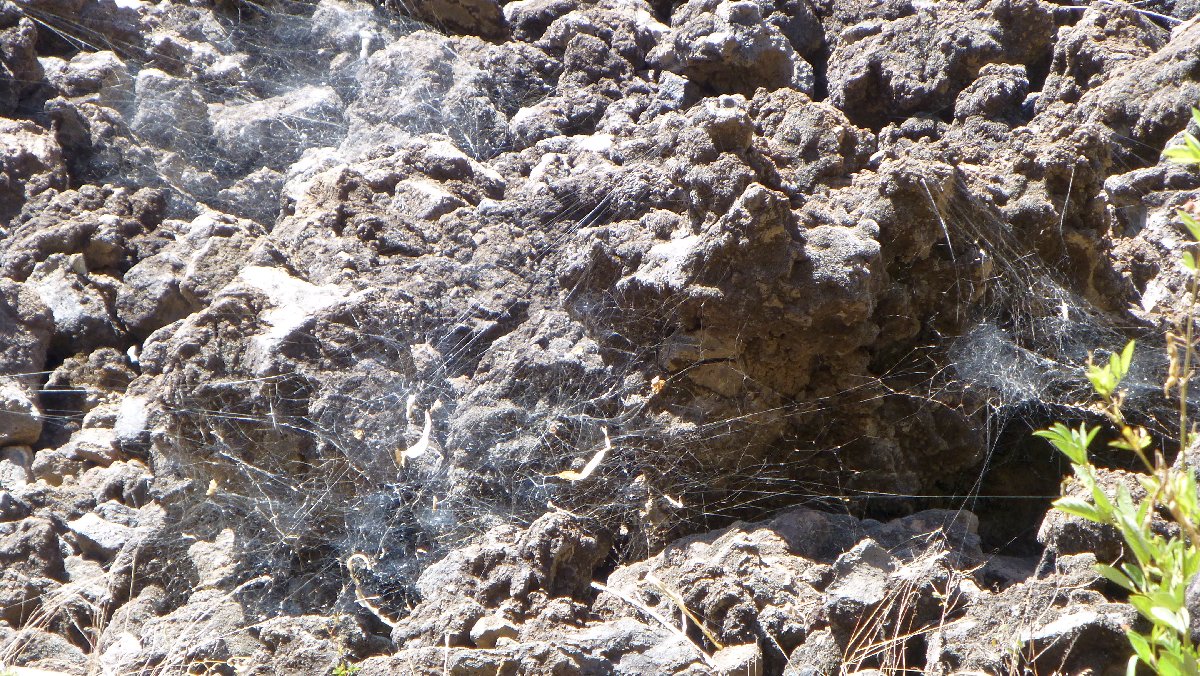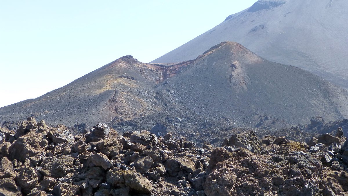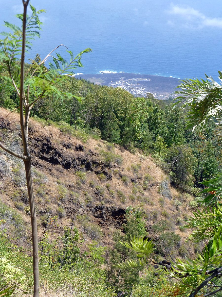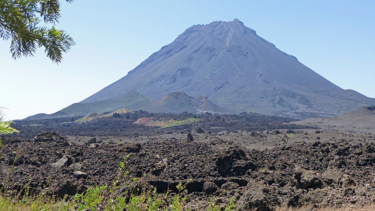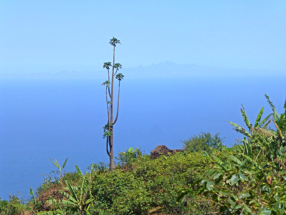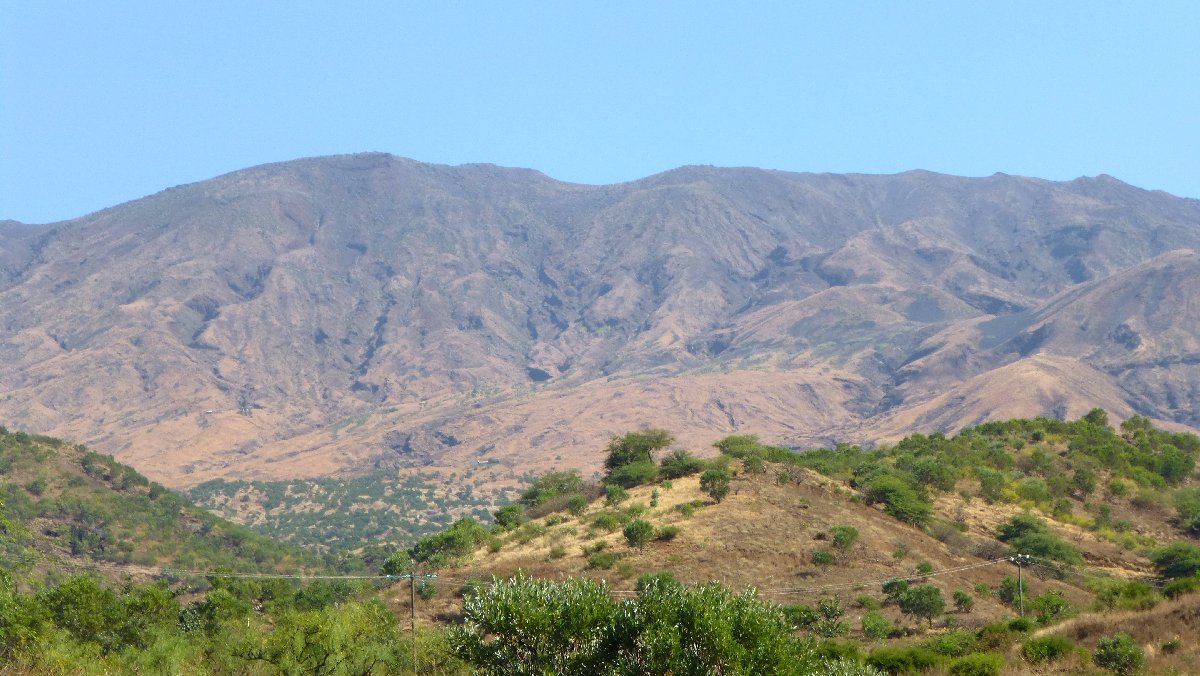 direkt unterhalb der Caldera wird es auf der Nordseite grüner, hier steigen Passatwind auf und Wolken bilden sich