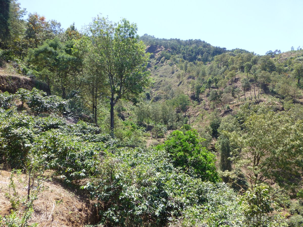 Plantagen sind hier ganz kleinräumig mit vielen anderen Pflanzen durchsetzt