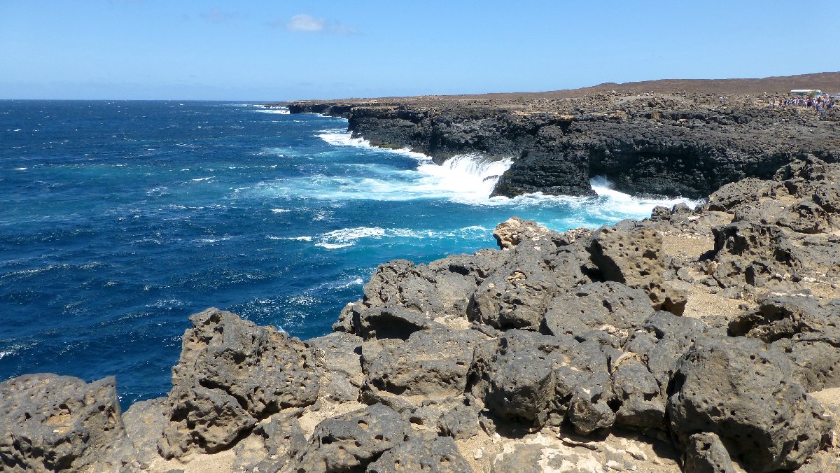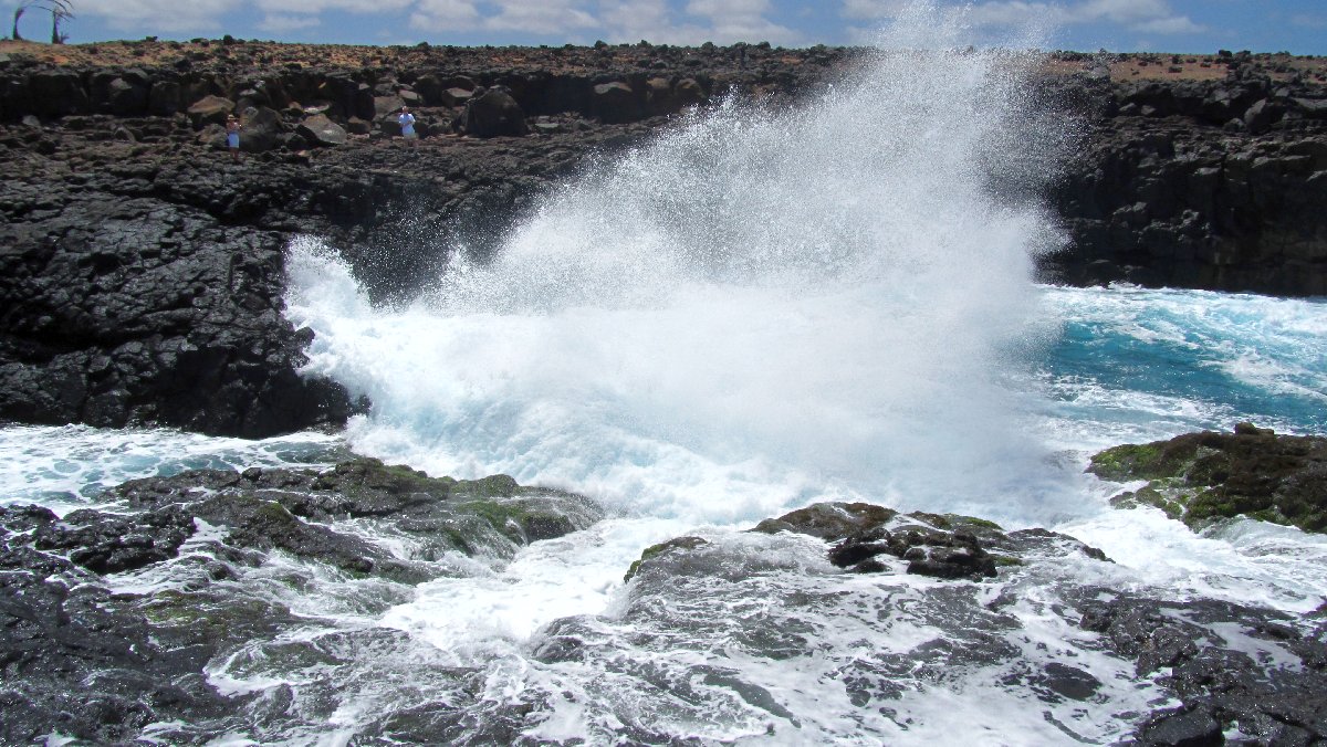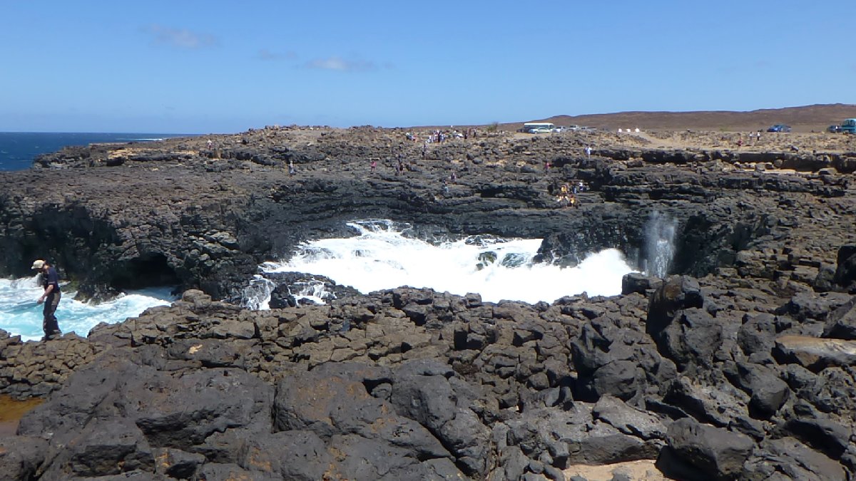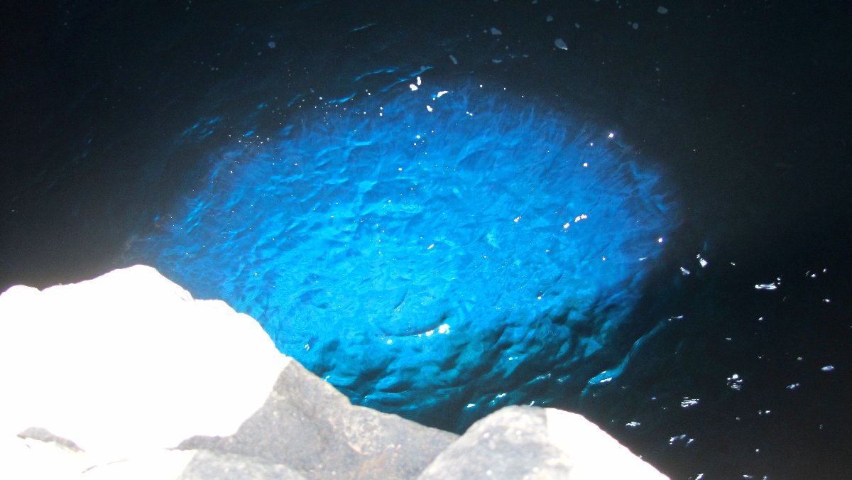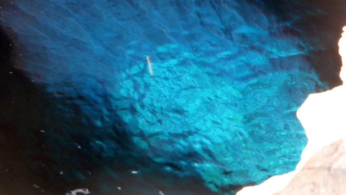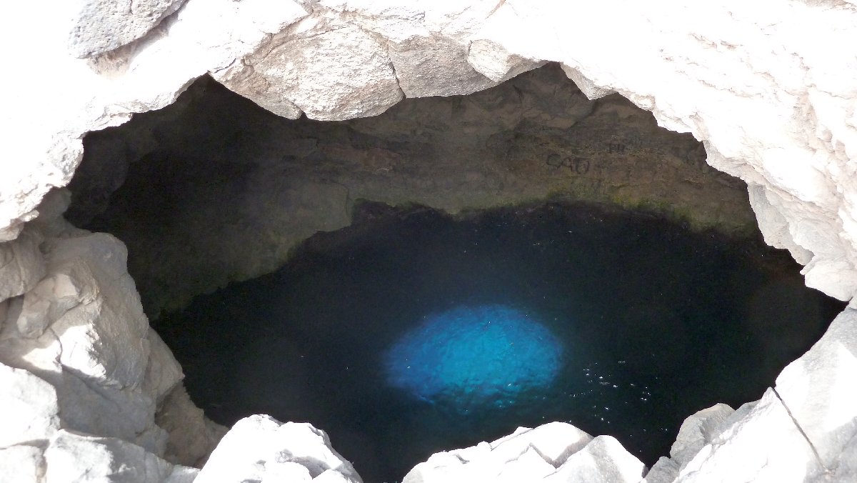 Touristenattraktion: Blue Hole - durch eine Unterwasserhöhle fällt Sonnenlicht und lässt das Wasser blau schimmern