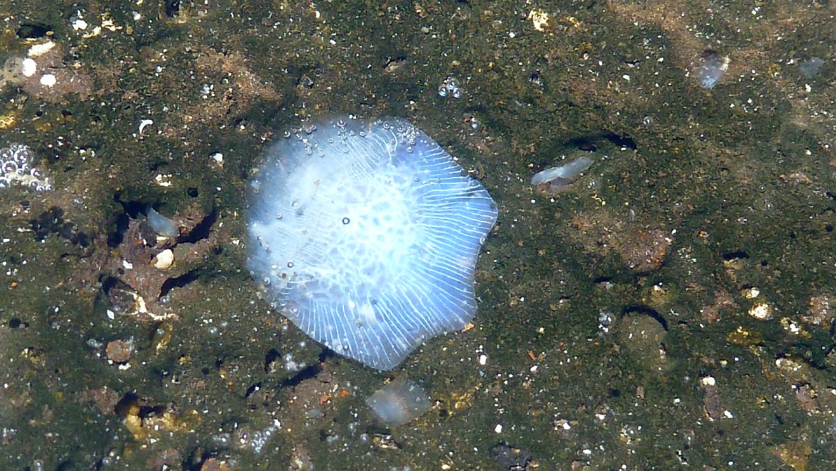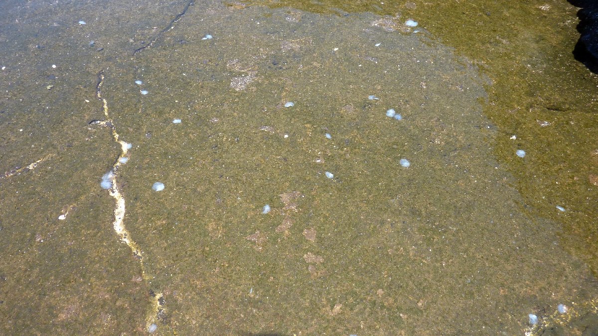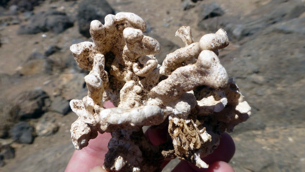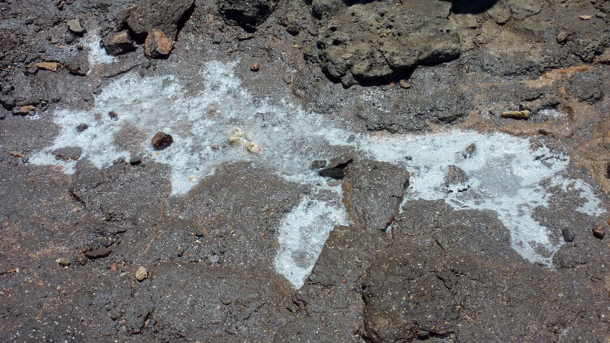 Salzkruste, die beim Eintrocknen einer Meerwasserpfütze übrig geblieben ist