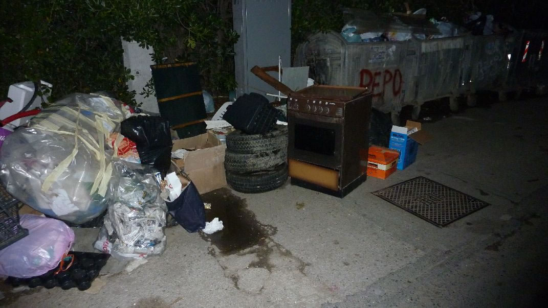 Müll: hier soll eigentlich Mülltrennung stattfinden, aber stets wird nur ein Müllhaufen daraus