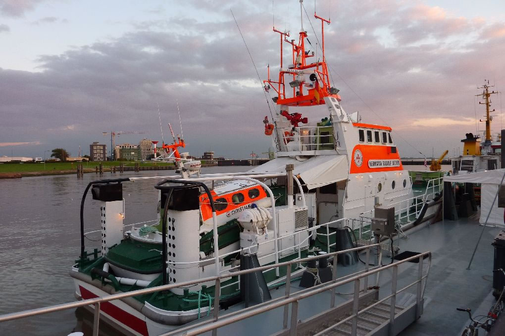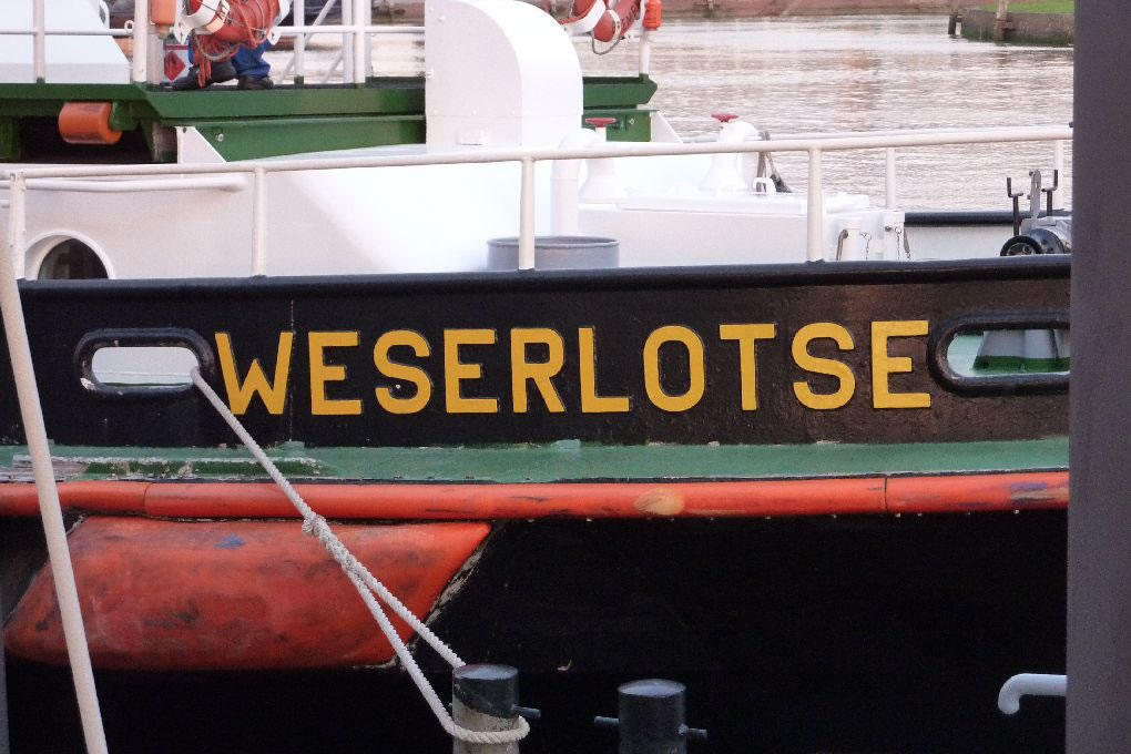 auf dem Lotsenboot werden Lotsen, die sich auf der Weser gut auskennen zu den Schiffen gebracht