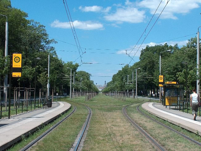 neu angelegte Tramstrecke entlang des Großen Gartens