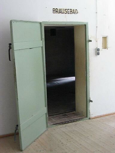 Blick in das sog. "Brausebad", Kammer für die Ermordung von Häftlingen mit Gas