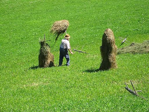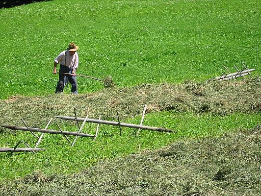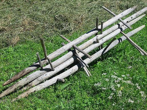 sog. Heumandl: Gras wird zum Trocknen über Holzgestelle gelegt