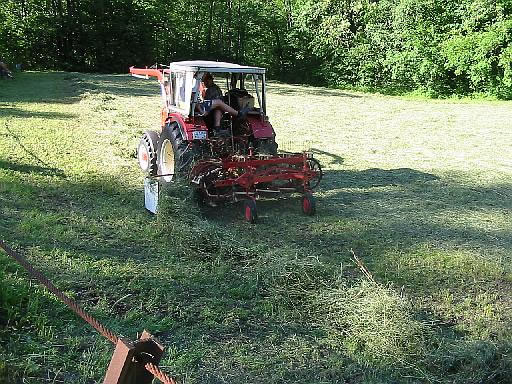 nach demTrocknen wird das Heu auf der Wiese ausgelegt und nachgetrocknet
