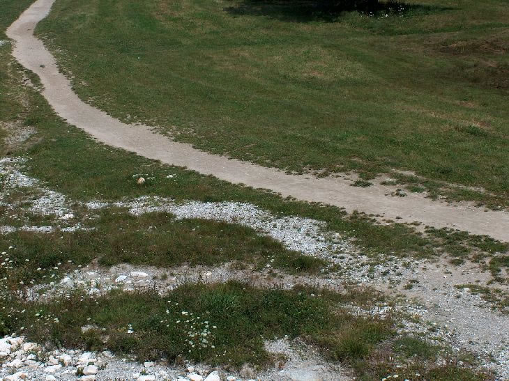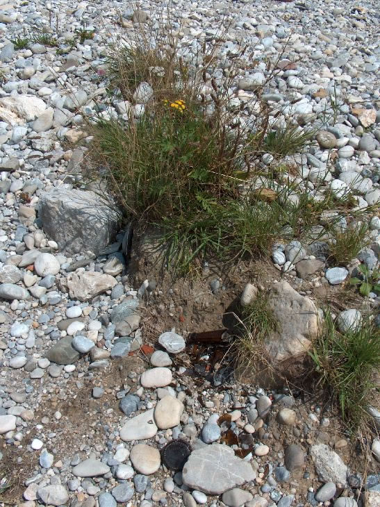 an einigen Stellen verschwinden die Reste des Oberbodens durch Abschwemmung