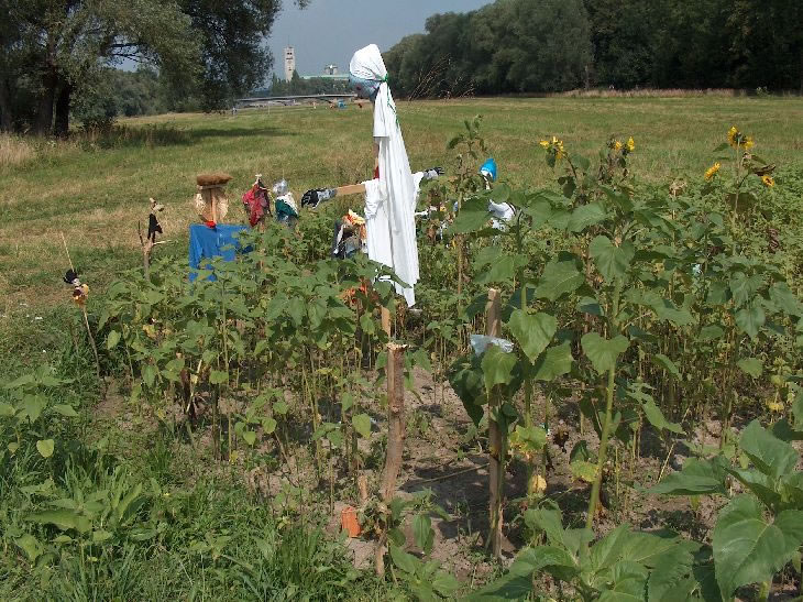 Urban Gardening? Ein kleines Sonneblumenfeld auf einer Wiese nahe der Isar