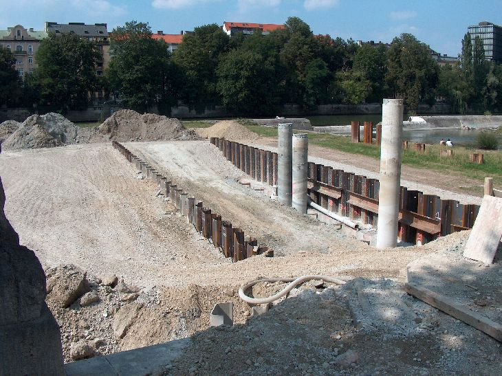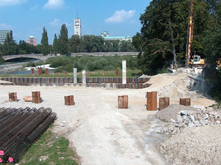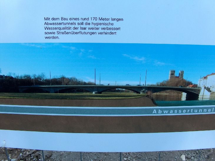 Bauarbeiten zu einem Abwassertunnel unter der Isar hindurch