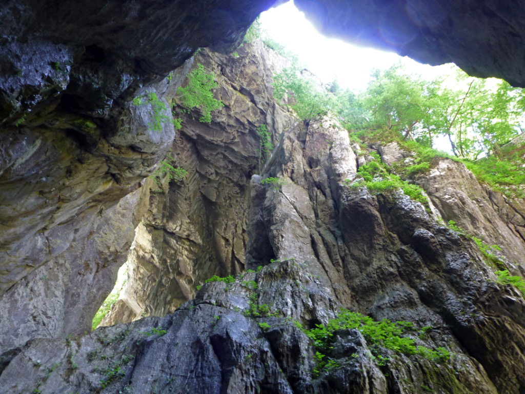 in einer gewaltigen Doline, einem Einsturzkrater kommt man wieder aus der Höhle