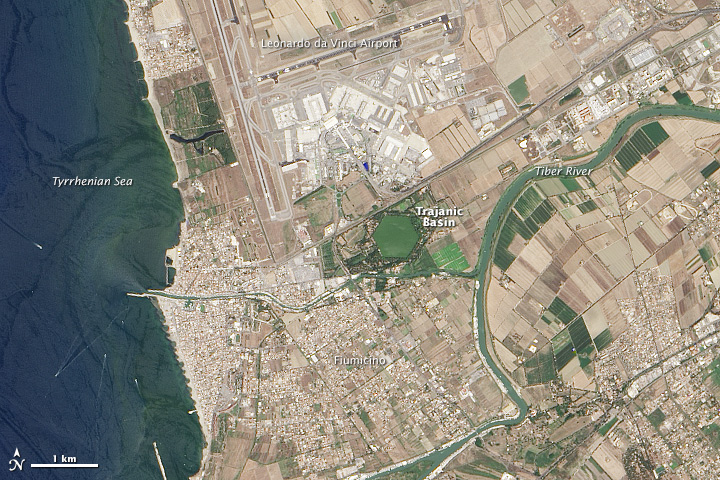 Was ehemals der Hafengelände der mächtigen Stadt Rom gewesen ist, ist heute die Stadt Fiumicino und der internationale Flughafen Leonardo da Vinci.. Aber das künstliche Hafenbecken Portus ist noch heute in der Landschaft sichtbar.