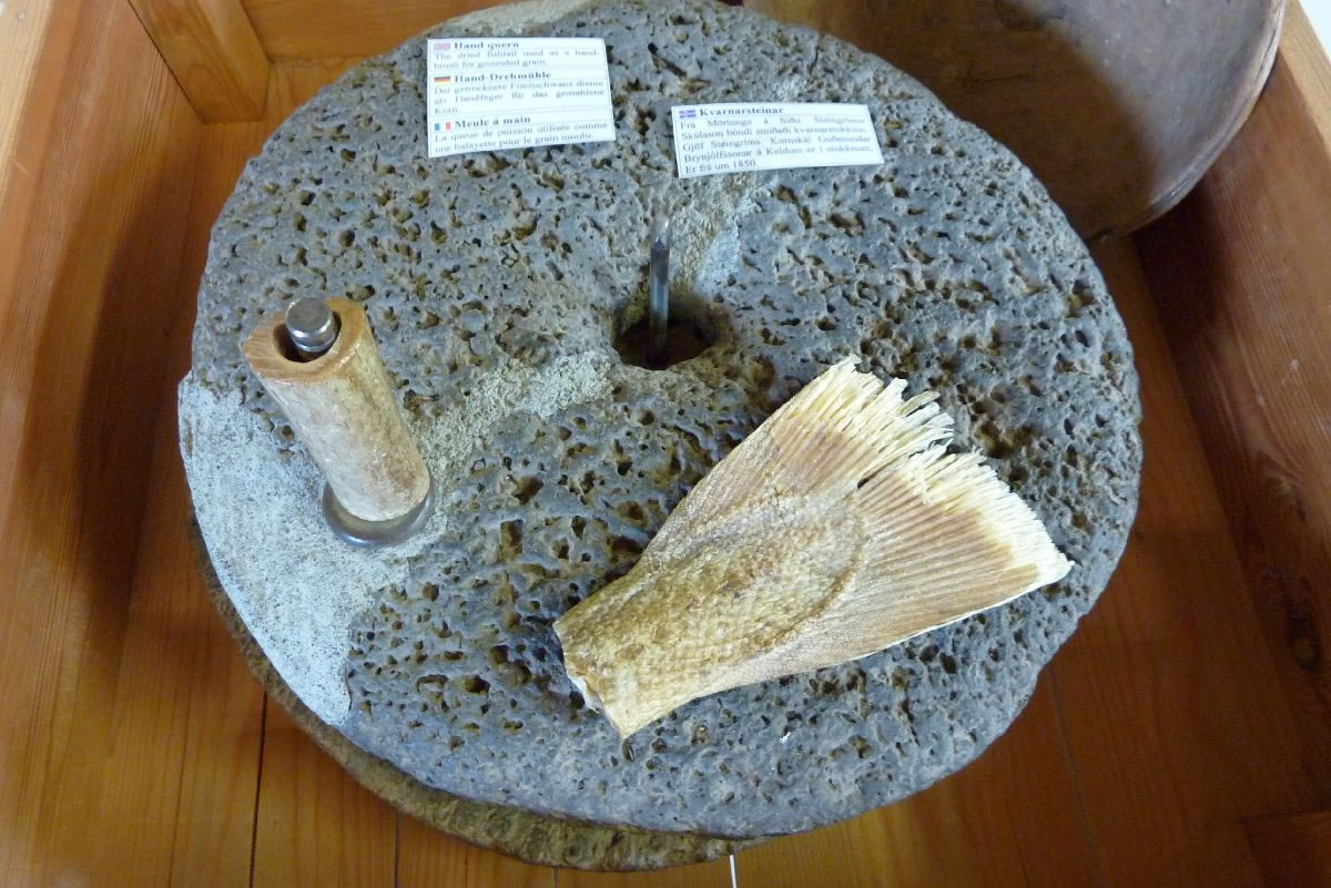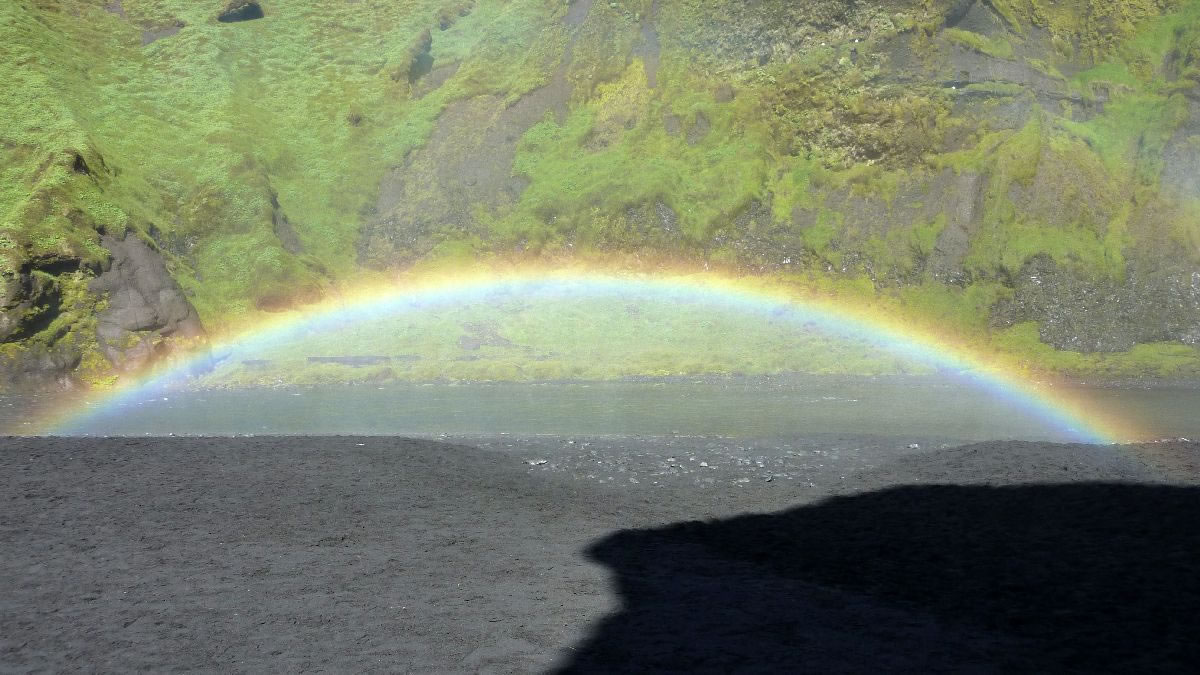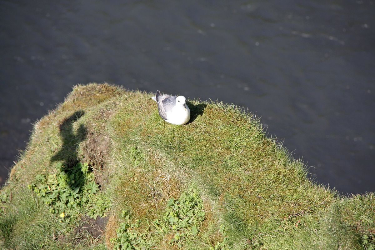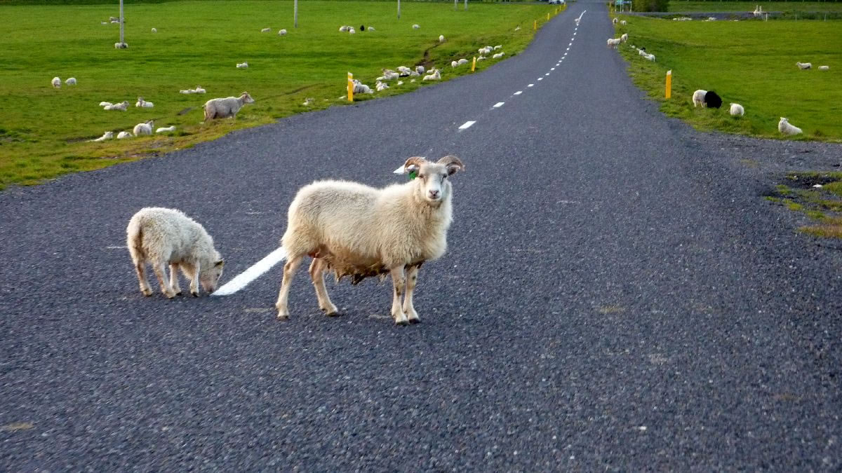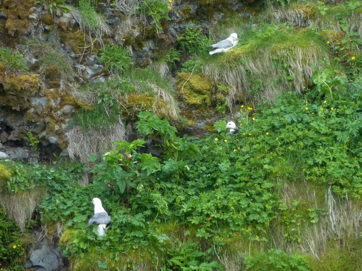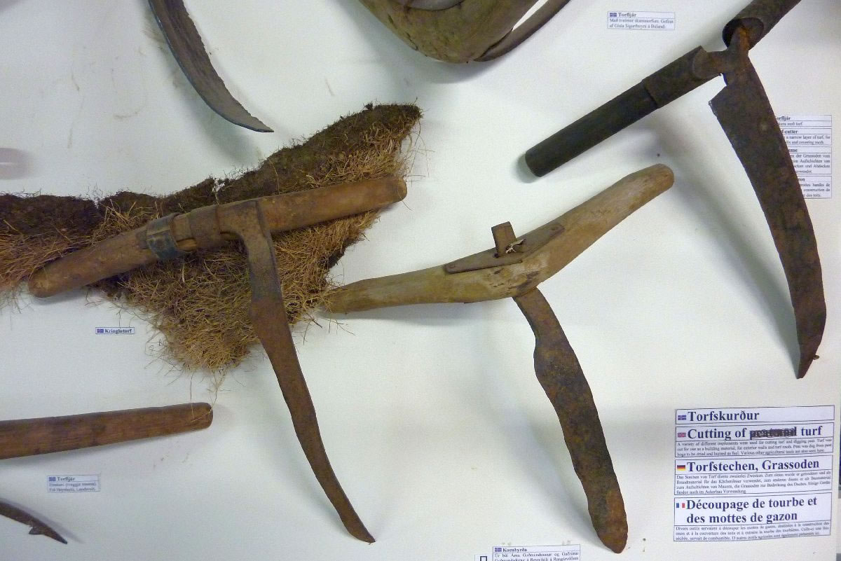 Blick über Skogar: rechts Schwemmlandflächen (Sandur), links am Hang durch Vieh entstandene "Terrassen" (Viehgangeln)