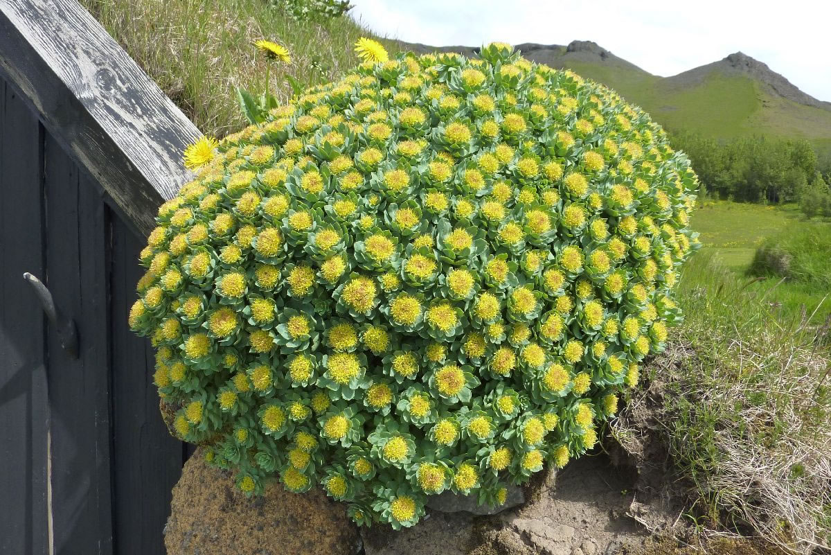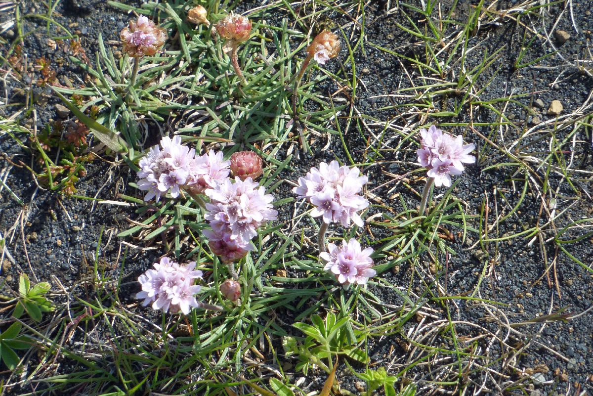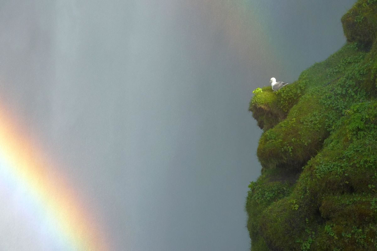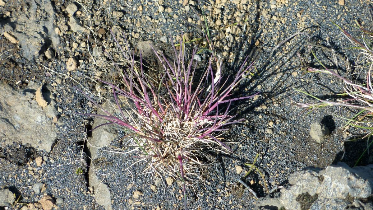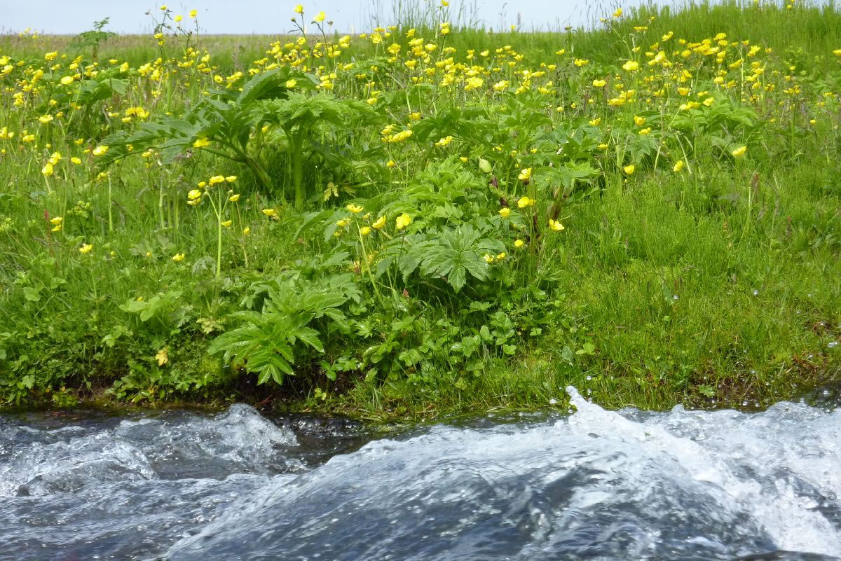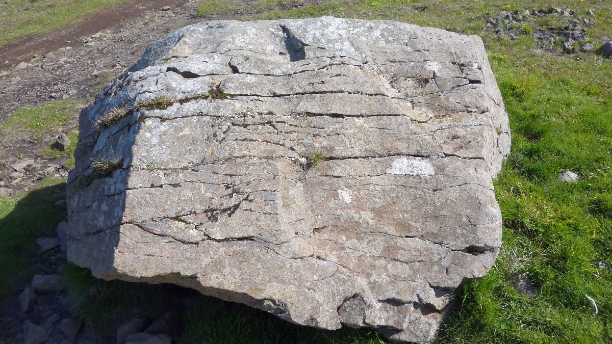 Blick über Skogar: rechts Schwemmlandflächen (Sandur), links am Hang durch Vieh entstandene "Terrassen" (Viehgangeln)