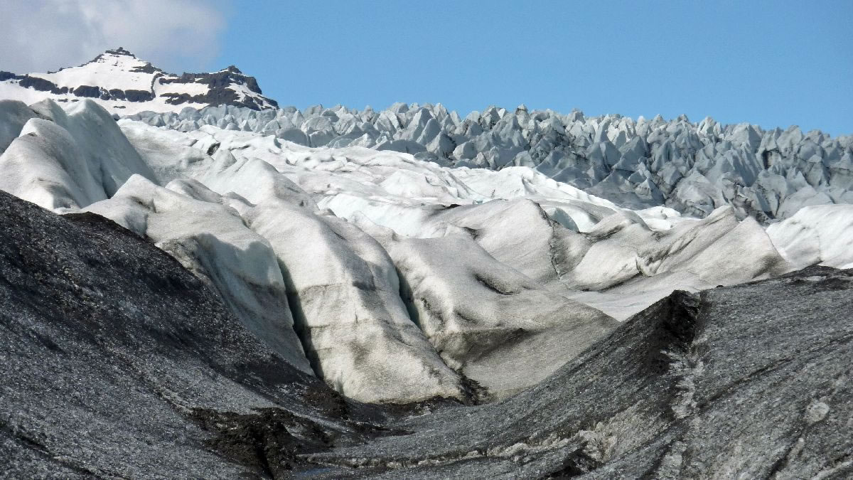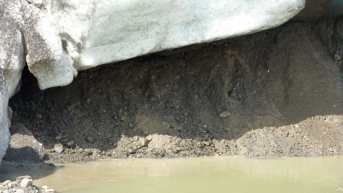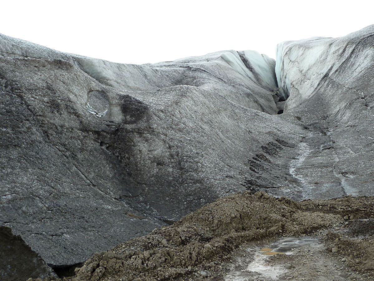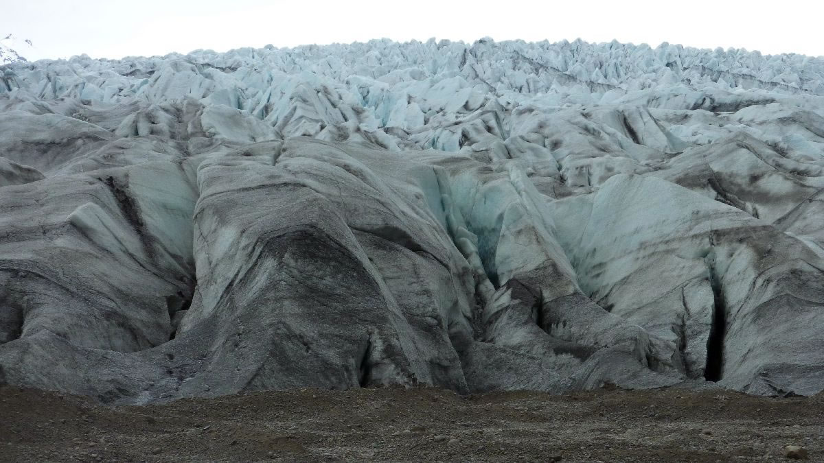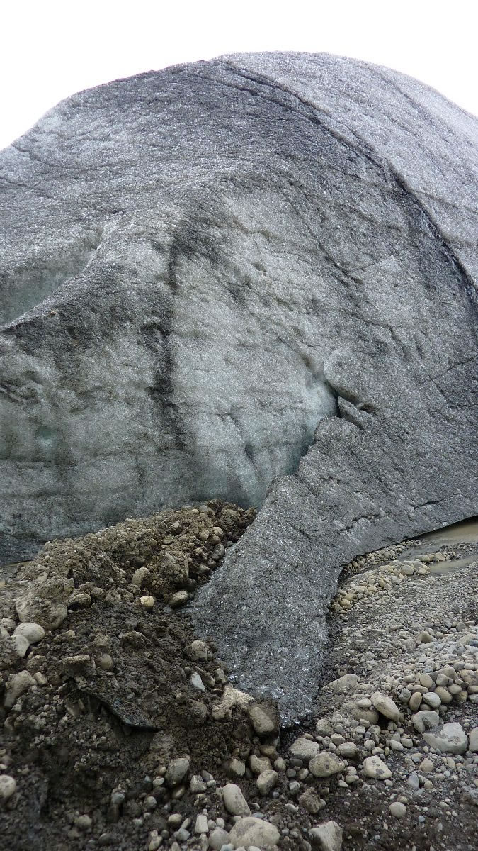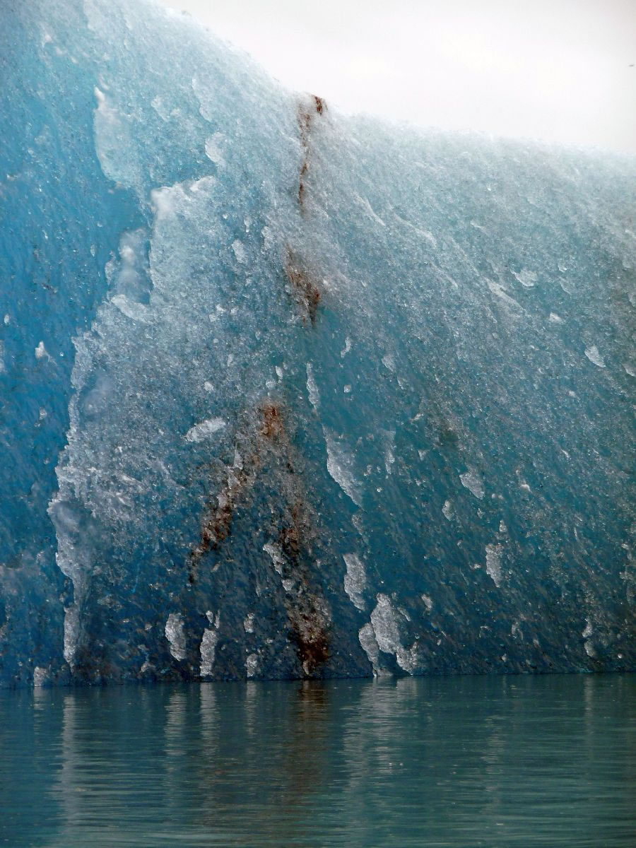 größere Vulkanausbrüche hinterlassen deutliche Spuren im Eis (hier senkrecht)