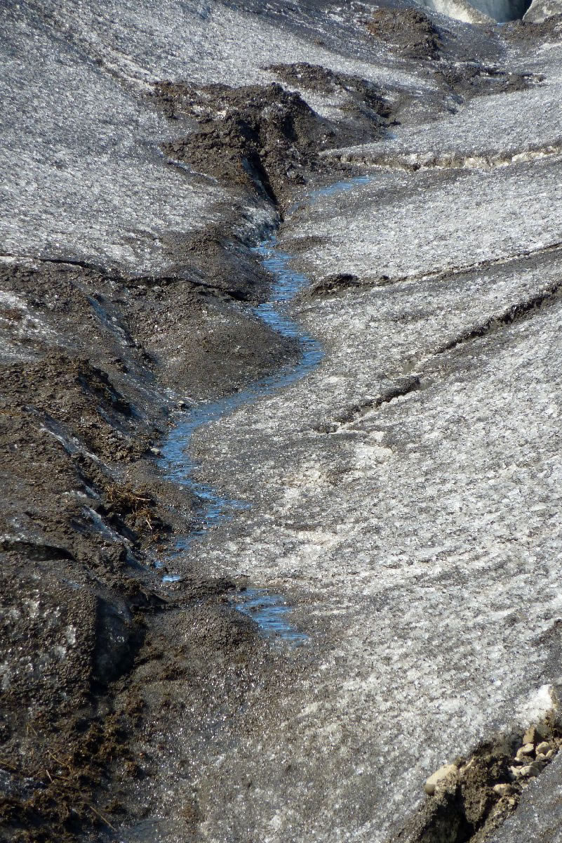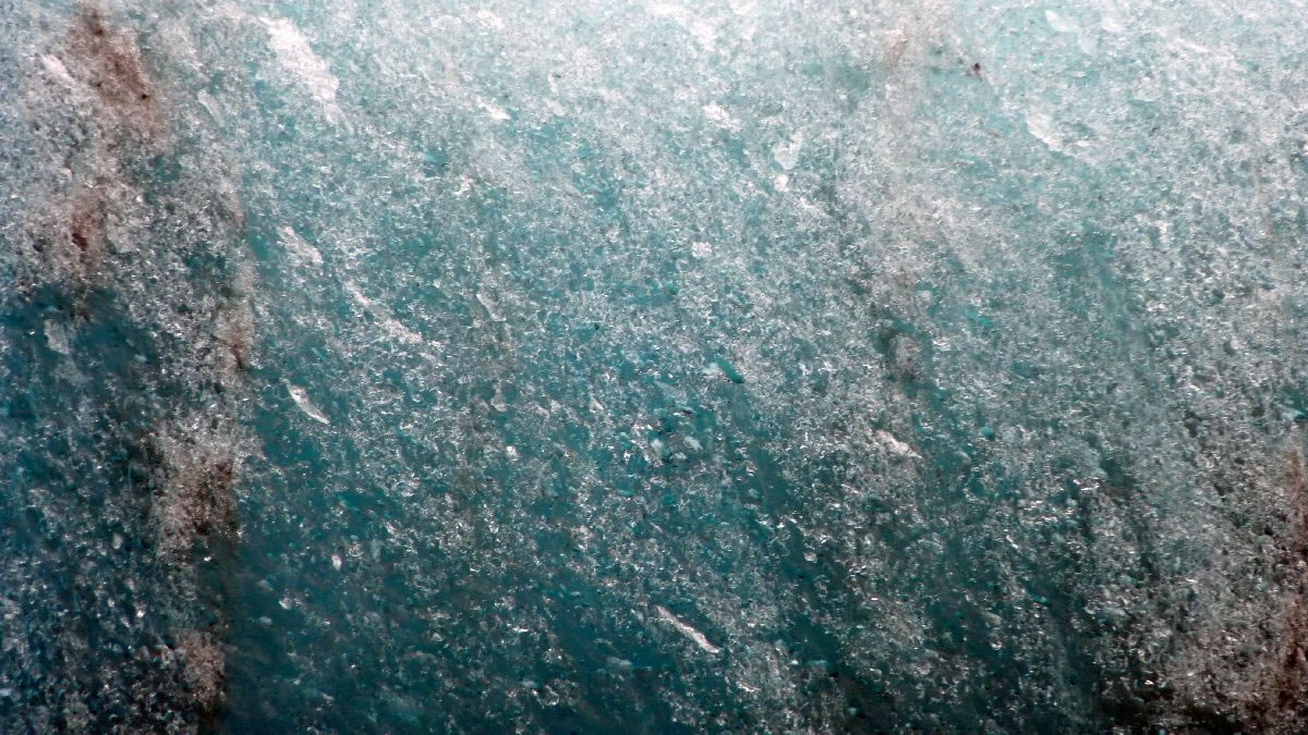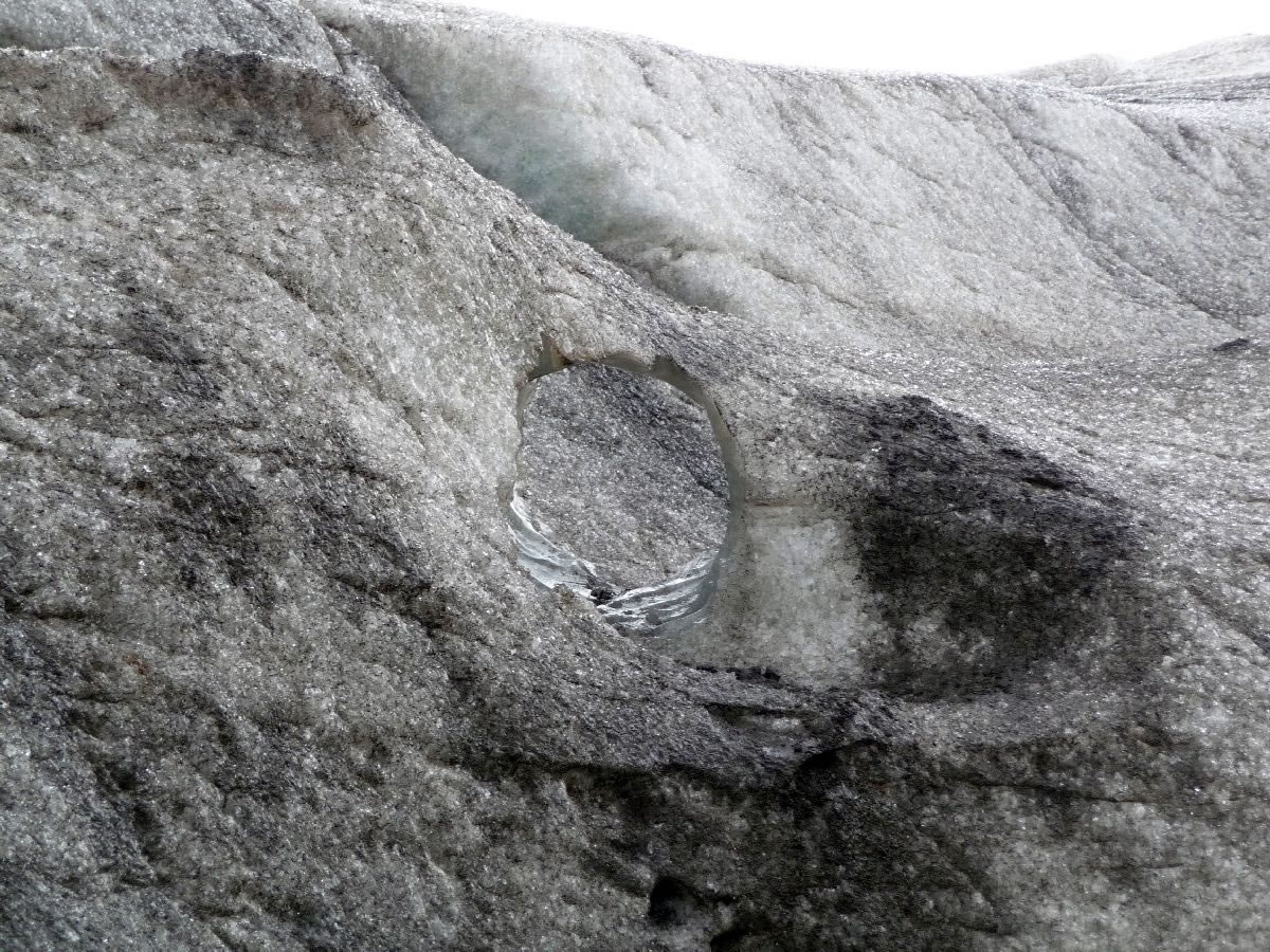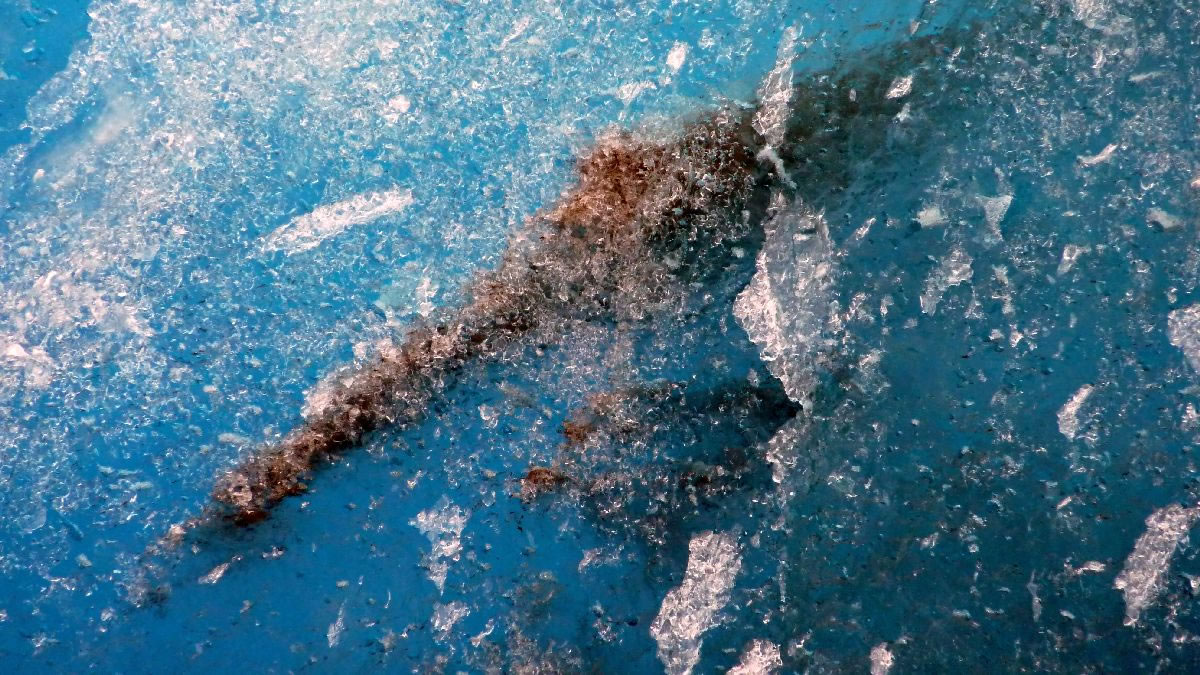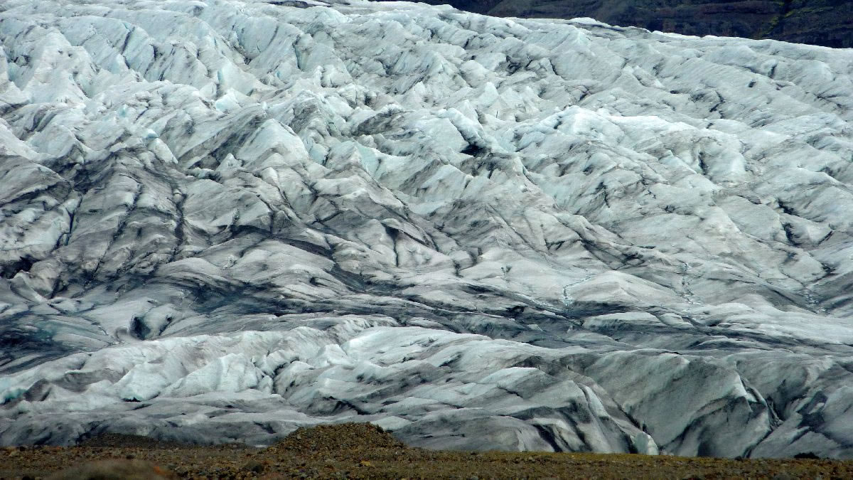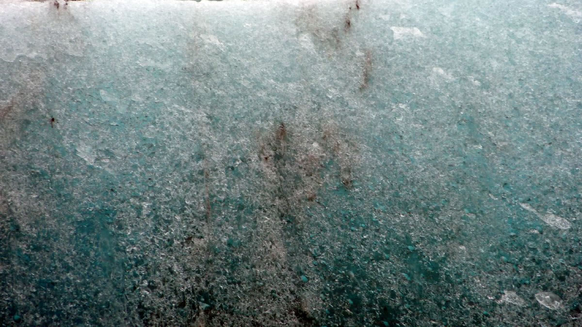 größere Vulkanausbrüche hinterlassen deutliche Spuren im Eis (hier senkrecht)