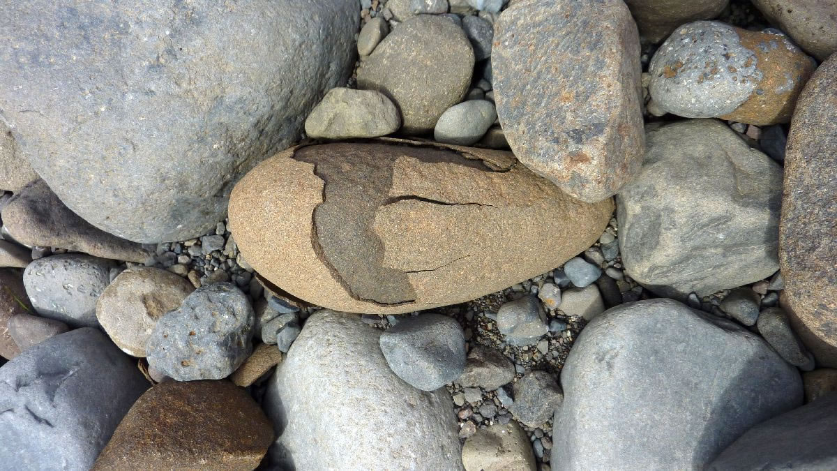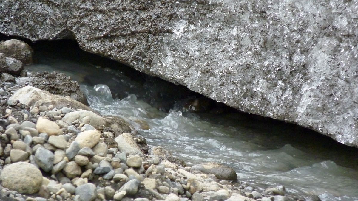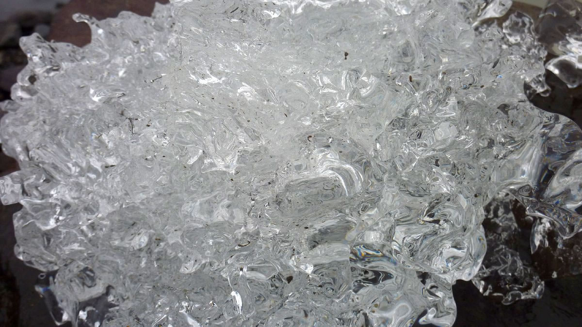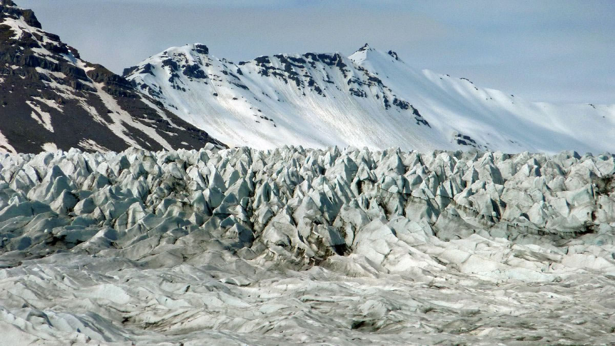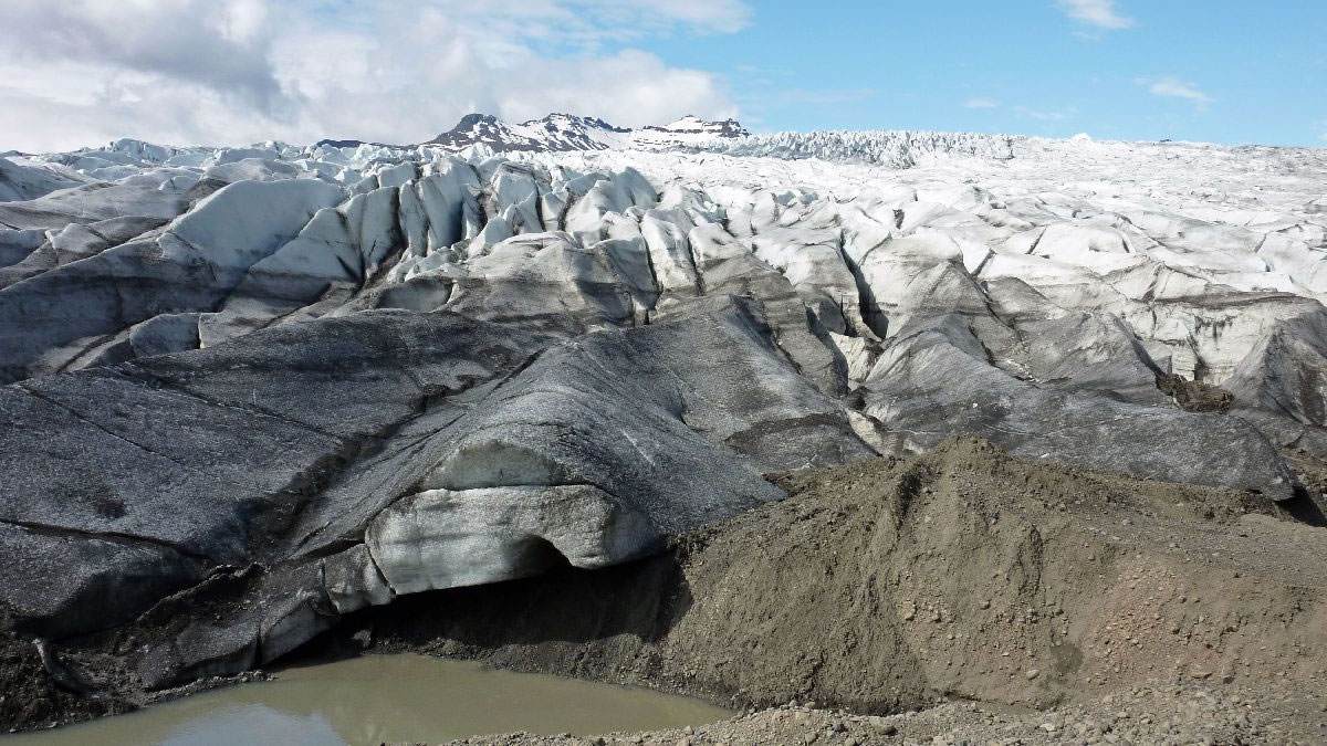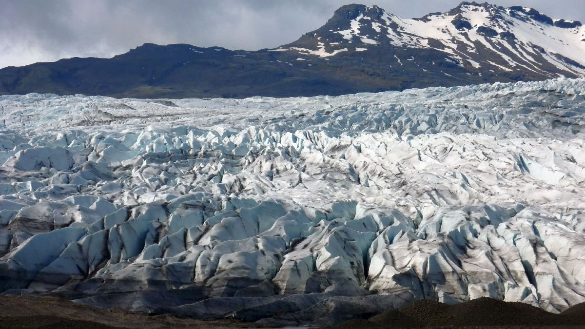 größere Vulkanausbrüche hinterlassen deutliche Spuren im Eis (hier senkrecht)