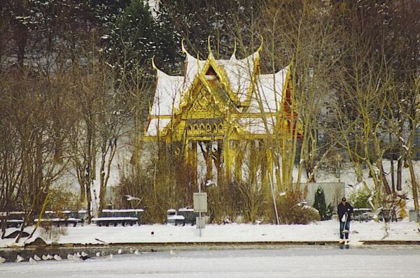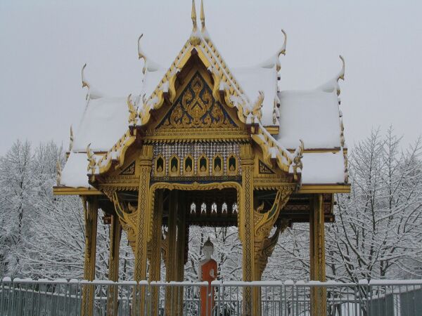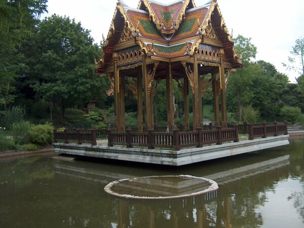 Die Thai-Sala Die Thai-Sala ist ein typischer thailändischer Pavillon. Sie ist im prunkvollen Bangkokstil erbaut, das heißt mit glasierten Ziegeln und Lackmalerei reich geschmückt. Gestiftet wurde sie von einem deutschen Kaufmann aus Bangkok. Die neun Meter hohe Figur - auch Sala genannt -, die sich im Thai-Sala befindet, ist geweiht und somit das erste buddhistische Heiligtum in Deutschland. Es finden dort alljährlich das thailändische Neujahrsfest im April, das hinduistische Lichterfest im Oktober sowie die buddhistischen Vollmondfeiern im Sommer statt. Der Japangarten Direkt neben dem Chinagarten liegt der Japangarten, der in Zusammenarbeit mit der Münchner Partnerstadt Sapporo entworfen und entwickelt wurde. Der Garten ist im Stil der Heianzeit (ca. 800 n Chr.) gehalten und enthält Elemente der japanischen Meditations- und Teich-Insel-Gärten, sowie Elemente aus dem Garten der Teezeremonie. Vom Japangarten aus lassen sich die Seen und Teiche des Westparks erblicken. Das Plätschern des Wasserfalls und die geschlungenen Wege sollen in den Zustand der Entspannung versetzen. Zu diesem Zweck verfügt der Japangarten über eine Besucherterrasse. Im gesamten Garten ist jedem einzelnen Element eine Bedeutung zugesprochen, die sich aus der japanischen Philosophie ergibt. So stellen die Steinplatten auf dem Weg zum Pavilion die japanische Gebirgslandschaft und der Blick über den See das Meer vor Japans Küsten dar.